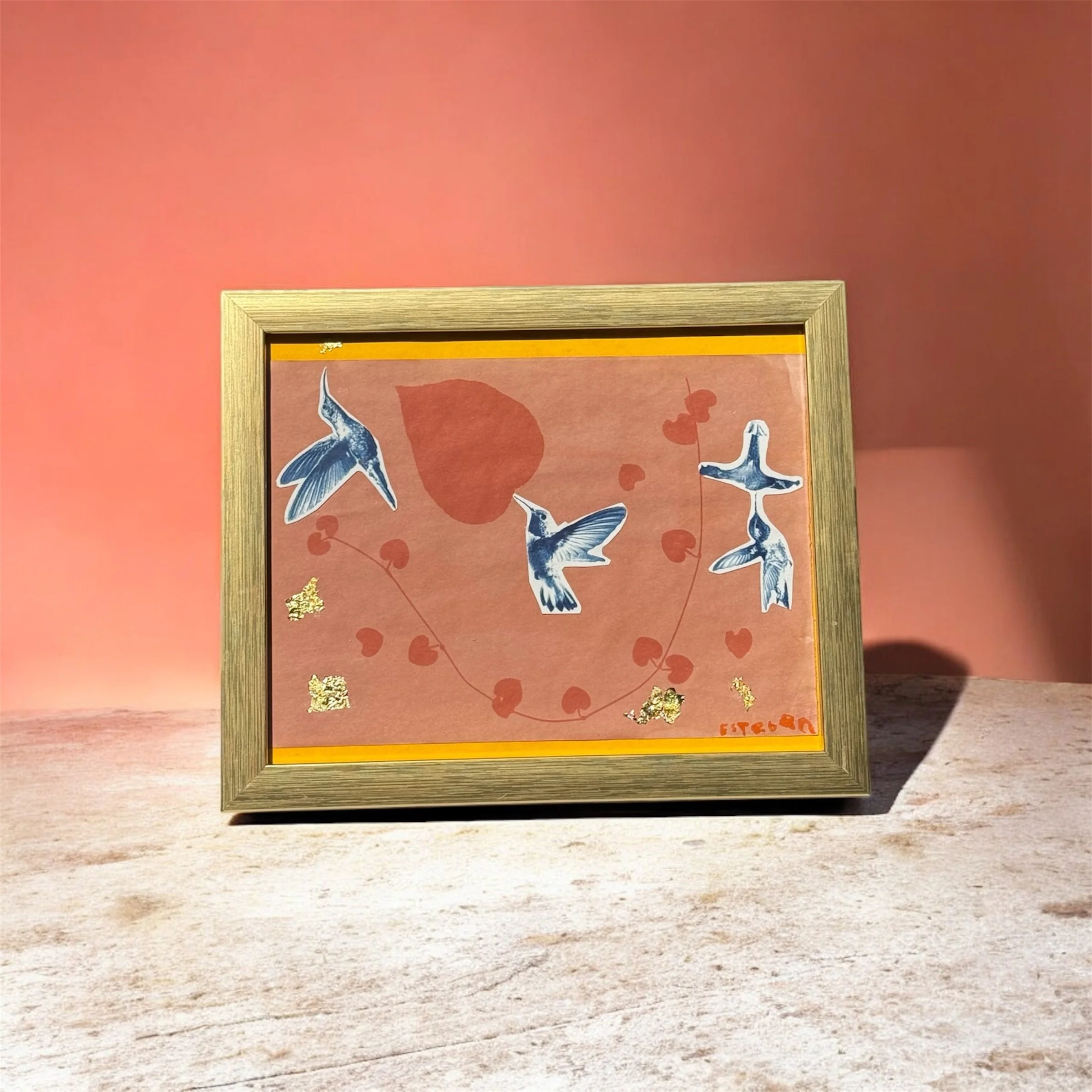 La generosidad es abrazar, y muchas cosas más. Se me ocurrió que cuando te dan. Un abrazo, se siente cálido, y por eso quise hacer una obra que se sintiera cálida. La quise decorar con corazones y usé Plantas con formas de corazón. Quise usar corazones porque también son cálidos. también usa colibrí, porque cuando ves uno te emocionas mucho y cuando te da felicidad se siente cálido